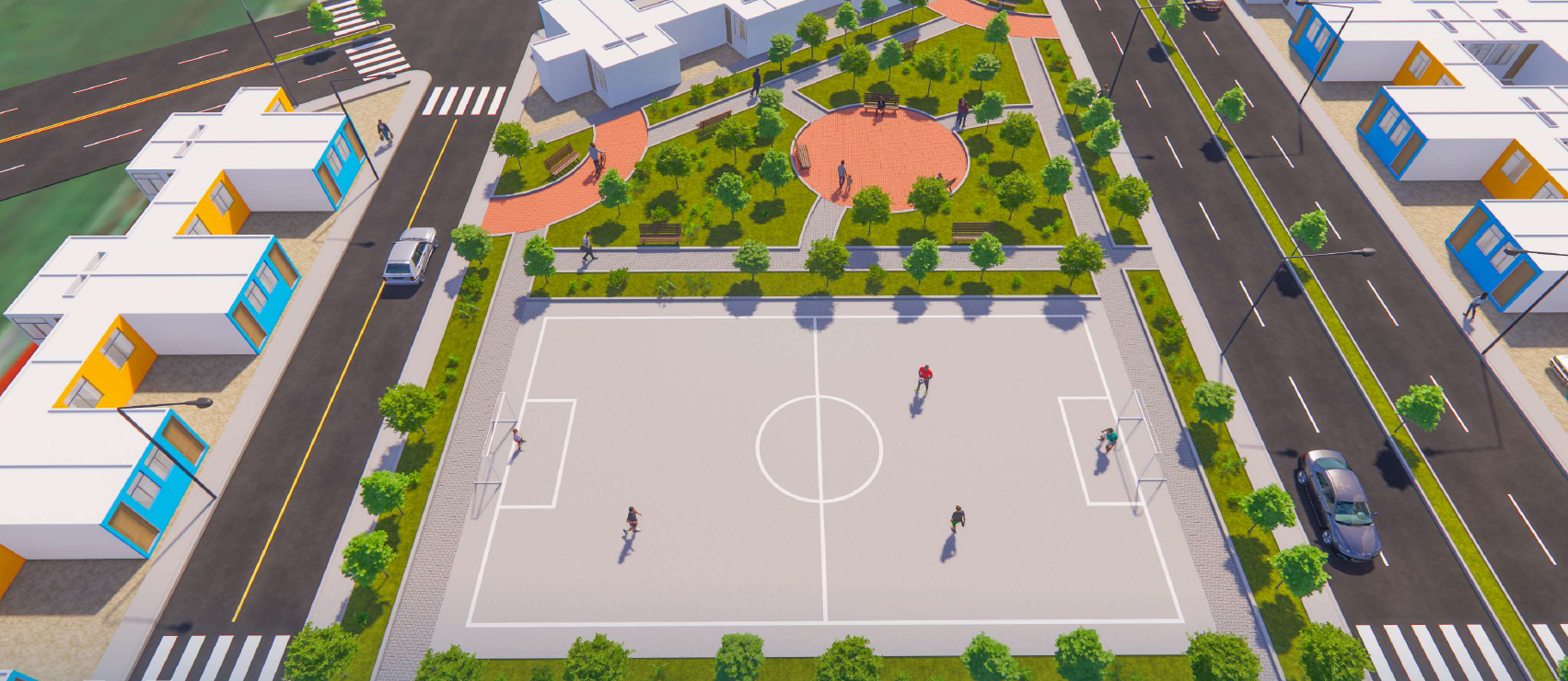 Este proyecto contempla 470 viviendas bajo el programa Techo Propio, y está diseñado con infraestructura urbana completa: pistas asfaltadas, veredas, redes de agua y desagüe, parques, colegio, supermercado y un club house para la comunidad.